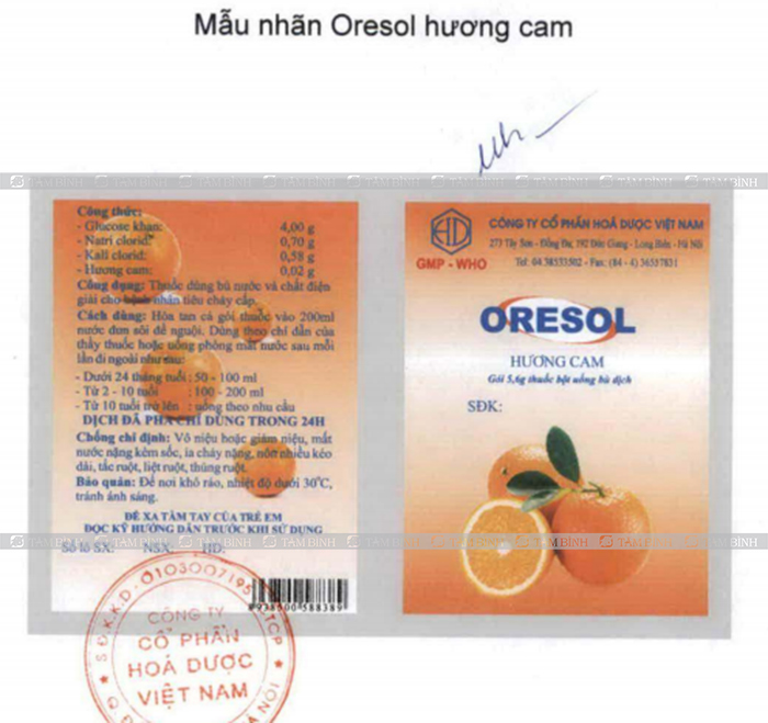 NATRI CLORID + KALI CLORID + NATRI CITRAT + GLUCOSE KHAN (ORESOL HƯƠNG CAM) 0,7G + 0,3G + 0,58G + 4G
